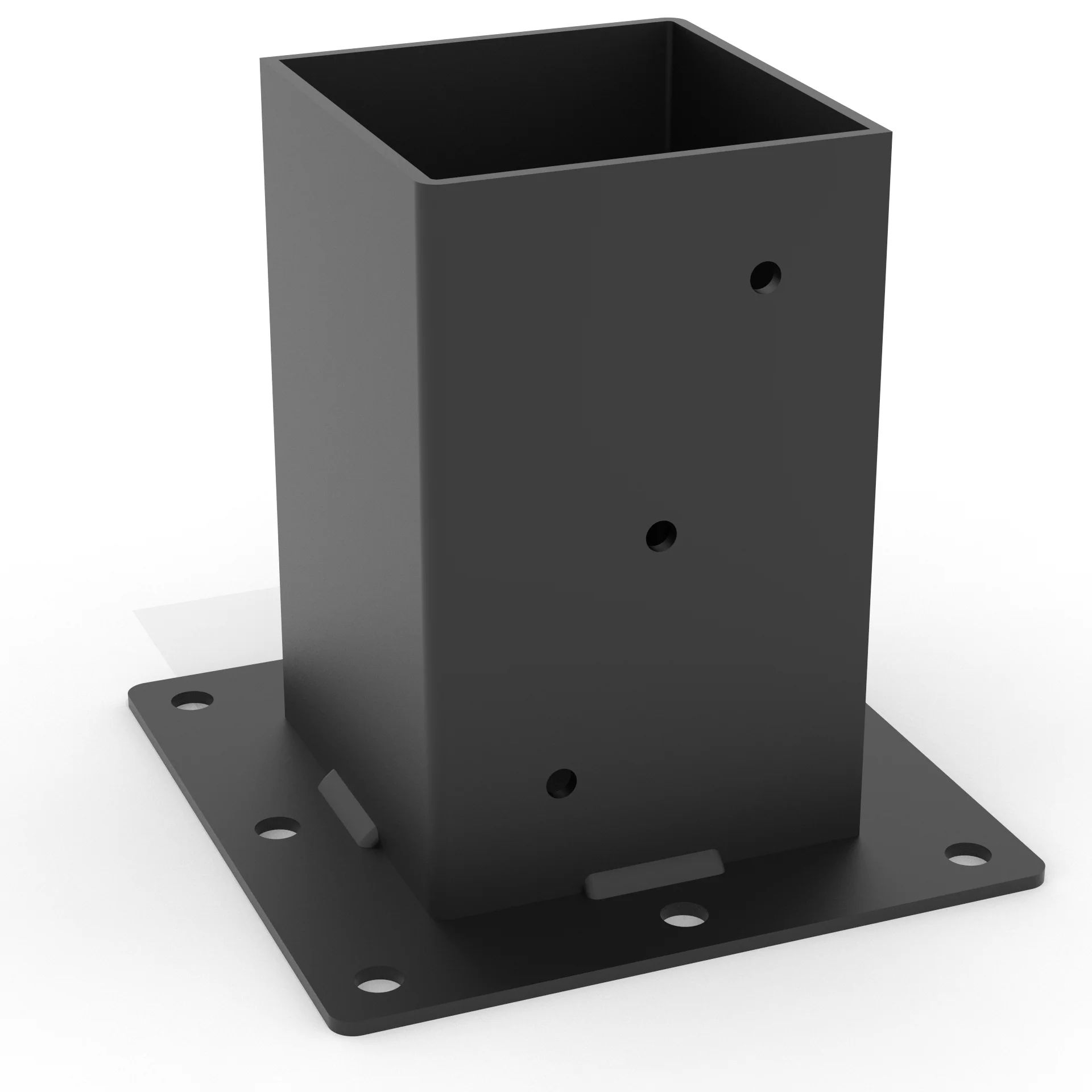 Crafted from 14-gauge steel (0.075" or 1.9 mm) and finished with a durable outdoor-grade powder coating, this bracket is built to anchor posts firmly to the ground while withstanding tough weather conditions. Its modular design offers both structural integrity and modern appeal, making it a functional and stylish addition to any outdoor space.